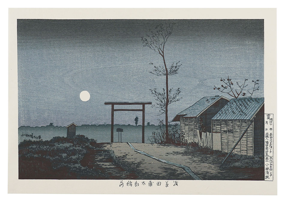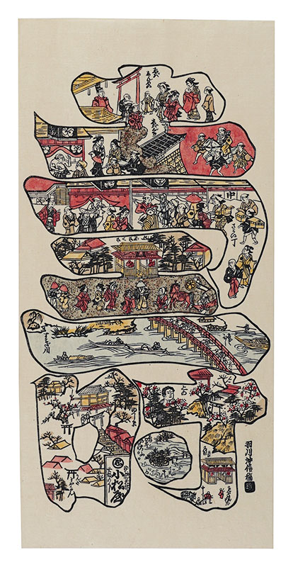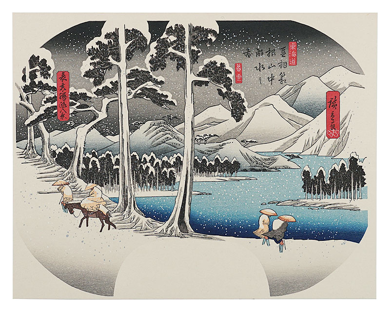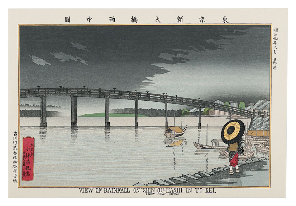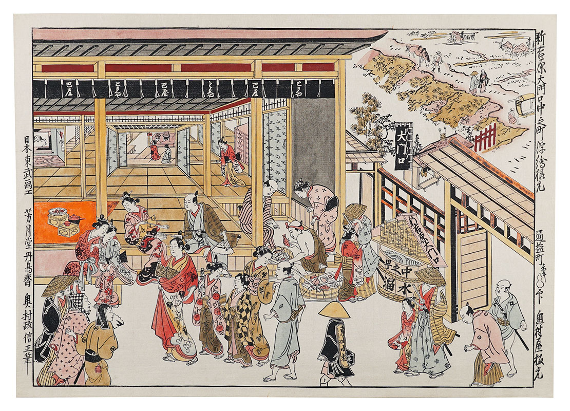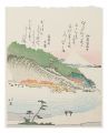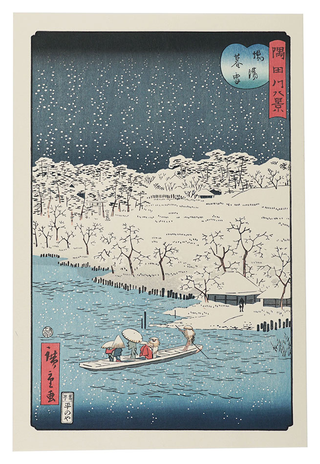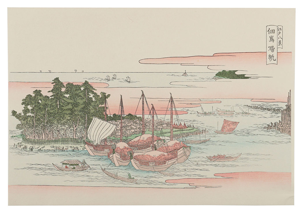 清倍:定家の道行(極少点シミ)/師政:品川汐干の図/沖信:寿の字江戸名所/政信:新吉原大門口仲之町浮絵根元/清倍二代:志だの小太郎/重長:浮絵江戸八景図/春信:風流江戸八景 両国橋夕照/春重:楼上椽端美人(マージン極少点シミ)/豊春:浮絵 洛陽四条河原夕涼図/春章:きさらぎ はつ午 梅見/清長:江戸八景 両国橋夕照/歌麿:雪の曳舟 -「銀世界」より-/北斎:たかばしのふじ/北斎:新板浮絵 王子稲荷飛鳥山之図/北斎:琉球八景 筍崖夕照/北斎:汐干狩(貼付箇所少シワ)/北寿:東都日本橋風景/北渓:江の島/辰斎:両国(極少点シミ)/五岳:大阪天保山夕立の景/豊広:江戸八景 佃島帰帆(貼付箇所極少シワ)/豊国二代:名勝八景 大山夜雨(マージン極少シミ)/国貞:霧中ノ山水/国芳:東都名所 新吉原(マージン極少シミ)/国虎:羅得島湊紅毛船入津之図/国長:阿蘭陀浮絵亜細亜洲巴必鸞城/英泉:月夜山水/広重:木曽海道六拾九次之内 大井/広重:六十余州名所図会 美作山伏谷(マージン少シミ)/広重:名所江戸百景 隅田川水神の森 眞崎/広重:豆相箱根山中湖水之図/広重二代:隅田川八景 橋場暮雪/清親:東京新大橋雨中図/清親:浅草田甫太郎稲荷