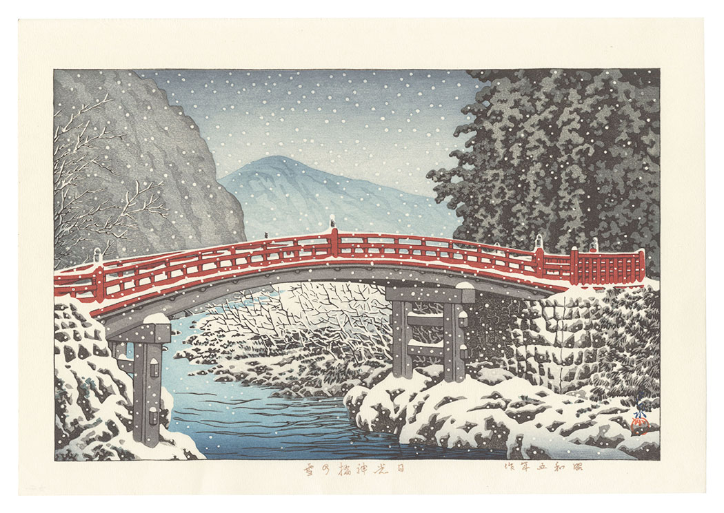 Kawase Hasui “Snow at Shinkyo Bridge, Nikko” | Yamada Shoten | Tokyo, Japan