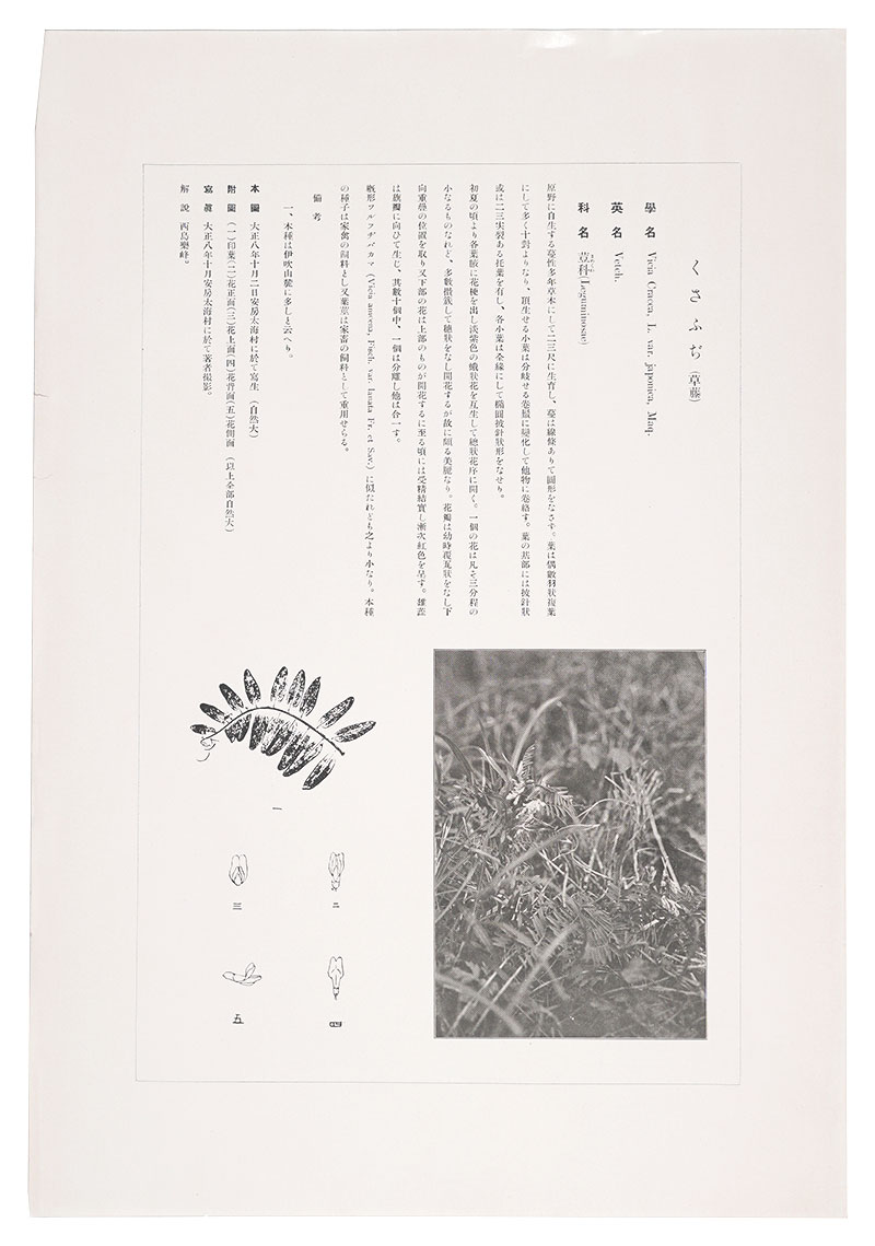 「鼠色一色の木版摺の投影写生図」「該当植物の写真図版付きの詳細な解説」
