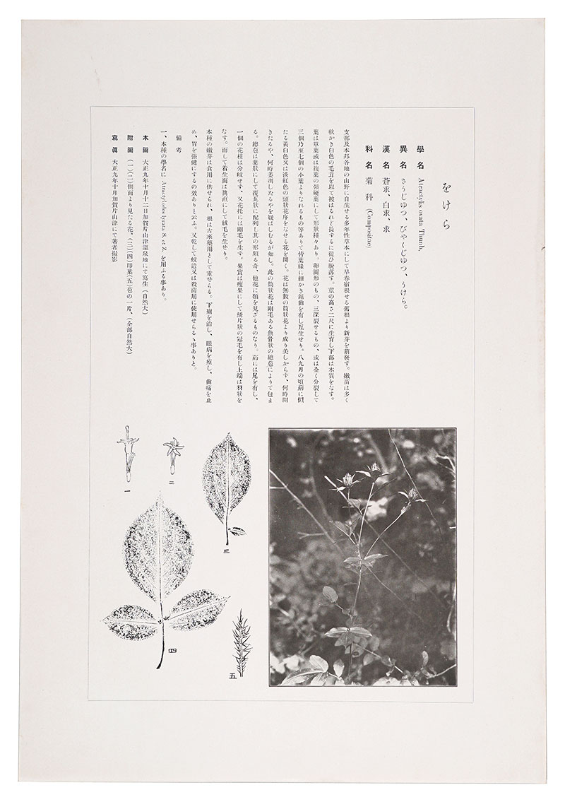 「鼠色一色の木版摺の投影写生図」「該当植物の写真図版付きの詳細な解説」