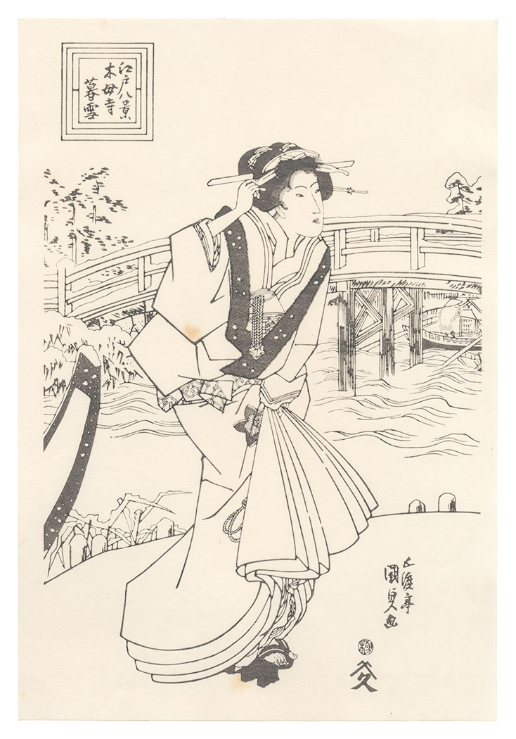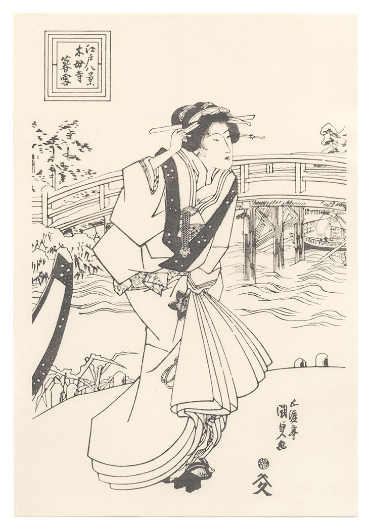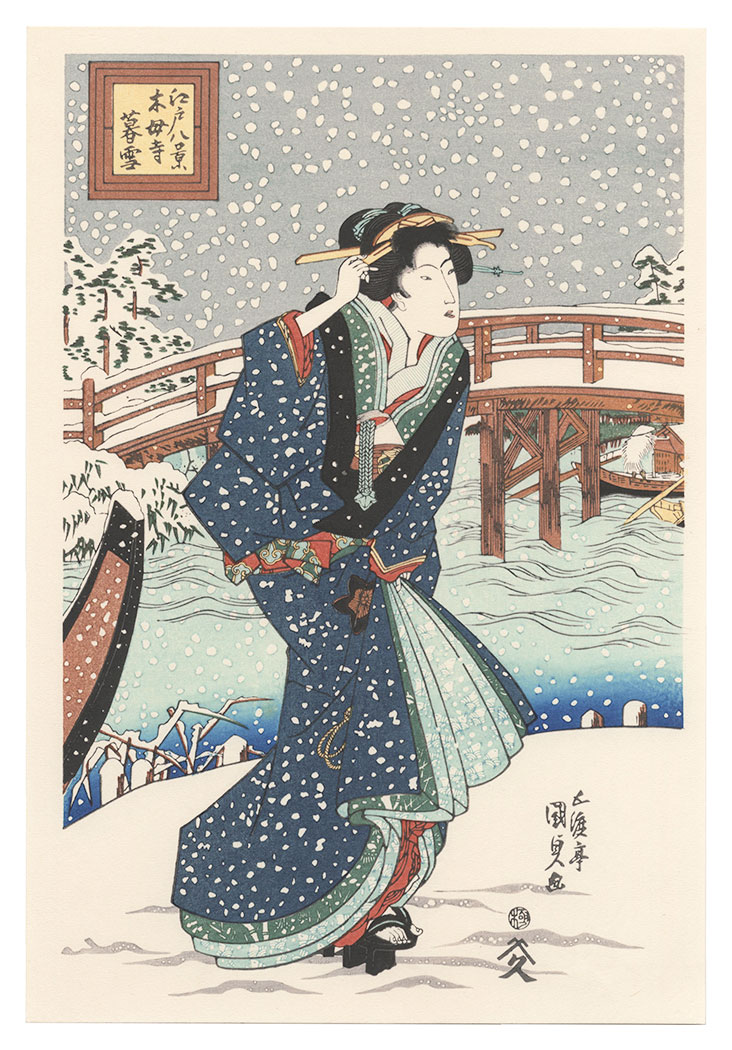 Kunisada I “Sequence of Woodblock Printing: Eight Views of Edo / Twilight Snow at Snow Viewing at Mokubo-ji Temple【Reproduction】” | Yamada Shoten | Tokyo, Japan