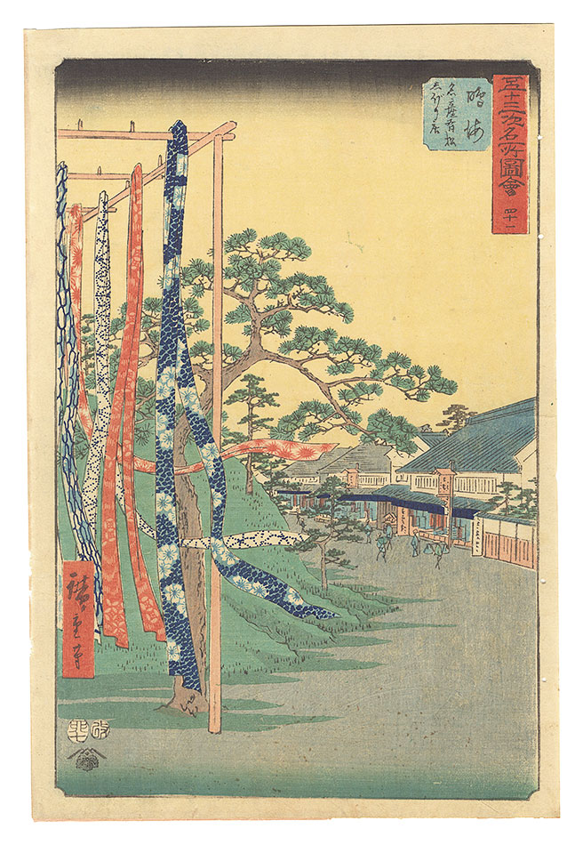 Hiroshige I “Famous Sights of the Fifty-three Stations / No. 41, Narumi: Shop of Famous Arimatsu Tie-dyed Cloth” | Yamada Shoten | Tokyo, Japan
