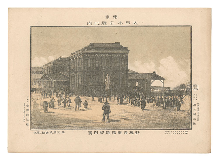 Katsuyama Eizaburo “Famous Places of Tokyo, Great Japan / Crowds at Shinbashi Station” | Yamada Shoten | Tokyo, Japan