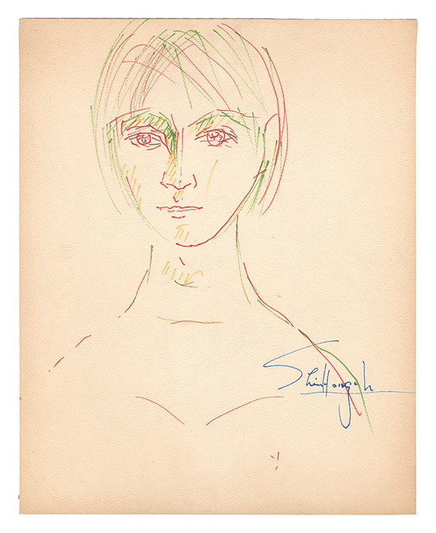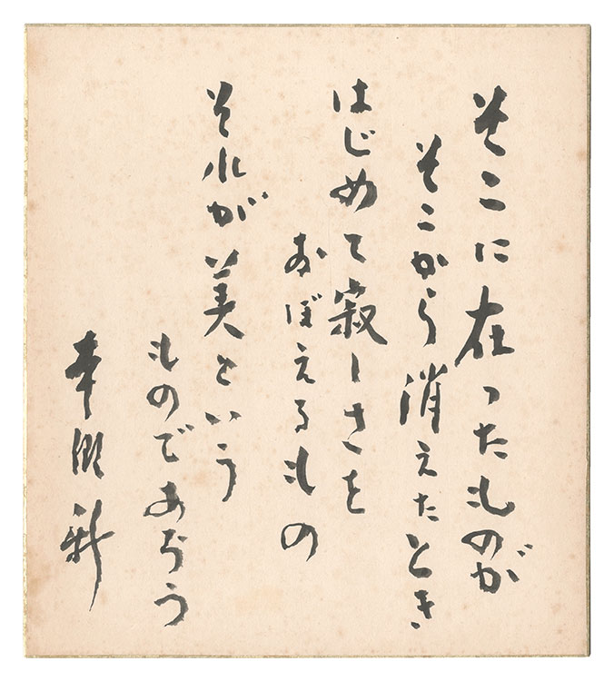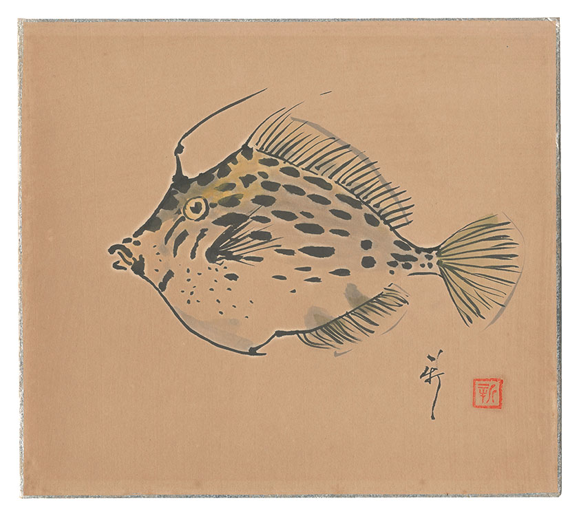 魚の色紙裏に作家による献呈署名(市瀬夫人宛)・メモ書き有