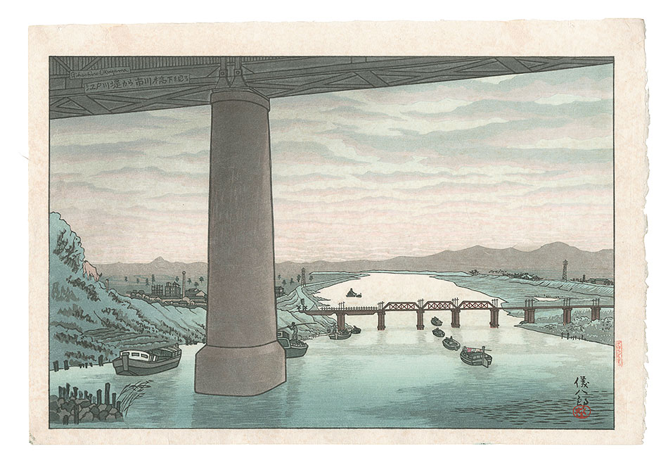Okuyama Gihachiro “Under Ichikawa Bridge Seen from the Edogawa Embankment” | Yamada Shoten | Tokyo, Japan