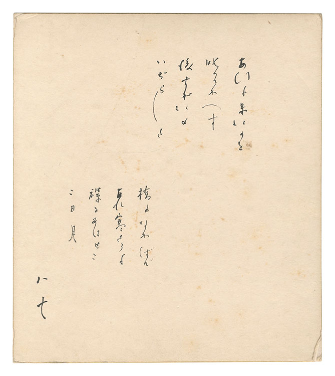 「橋のなかばで あれ寒さうな 襟をあはせた 二日月」