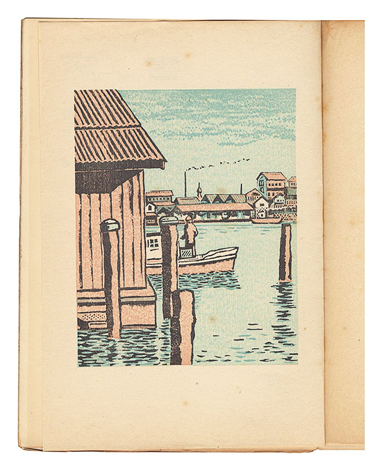 逸見享「築地小景」(木版 14.9×11.9cm)
