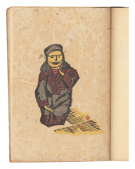前川千帆「酋長熊坂シタッピリレのかみさん」(木版 シミ有 13.5×10.5cm)