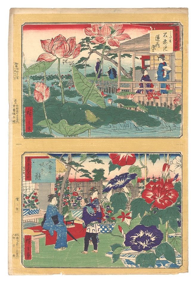 Hiroshige III “Famous Places of Flowers in Tokyo / Lotus in Full Bloom at Shinobazu Pond, Shitaya and Morning Glory at Iriya” | Yamada Shoten | Tokyo, Japan