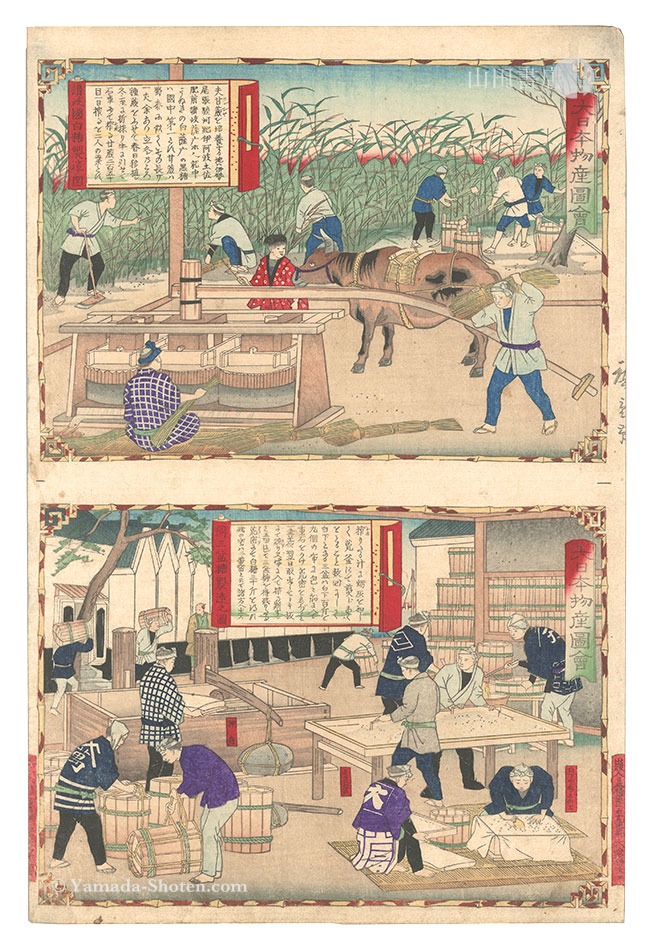 Hiroshige III “Famous Products of Japan / Sanuki Province: Making White Sugar; Making Sanbonto” | Yamada Shoten | Tokyo, Japan