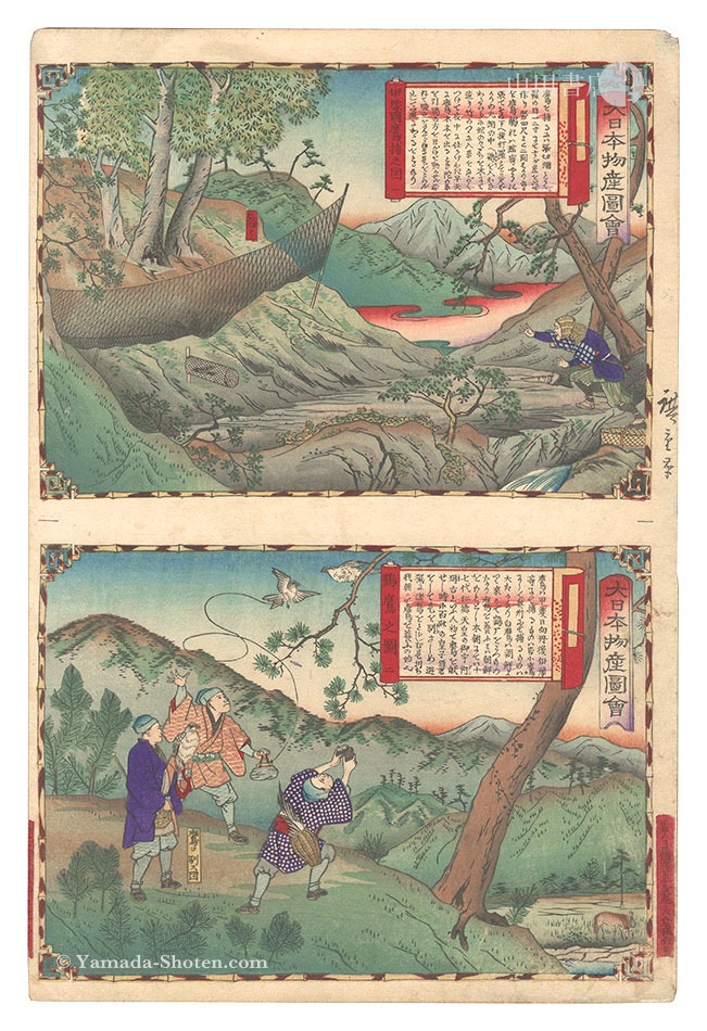 Hiroshige III “Famous Products of Japan / Iyo Province: Catching Hawks; Crane Hawk (Falconry)” | Yamada Shoten | Tokyo, Japan