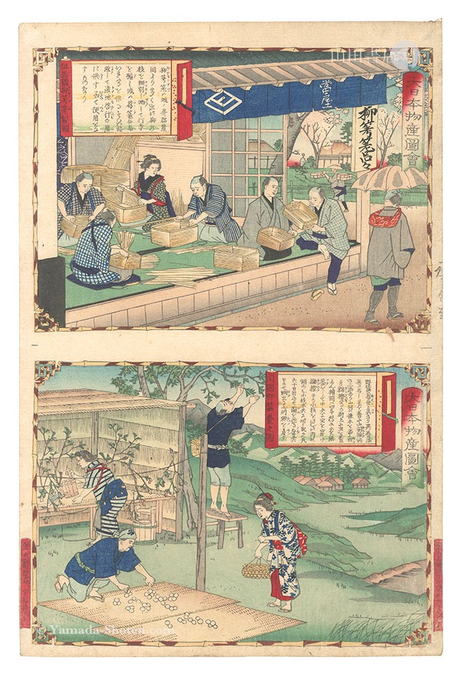 Hiroshige III “Famous Products of Japan / Tajima Province: Making Yanagi-gori; Wild Silkworm Cultivation” | Yamada Shoten | Tokyo, Japan