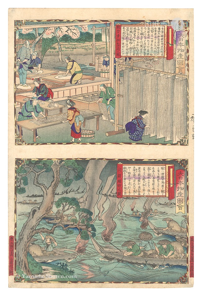 Hiroshige III “Famous Products of Japan / Noto Province: Making Somen; Mackerel Fishing” | Yamada Shoten | Tokyo, Japan