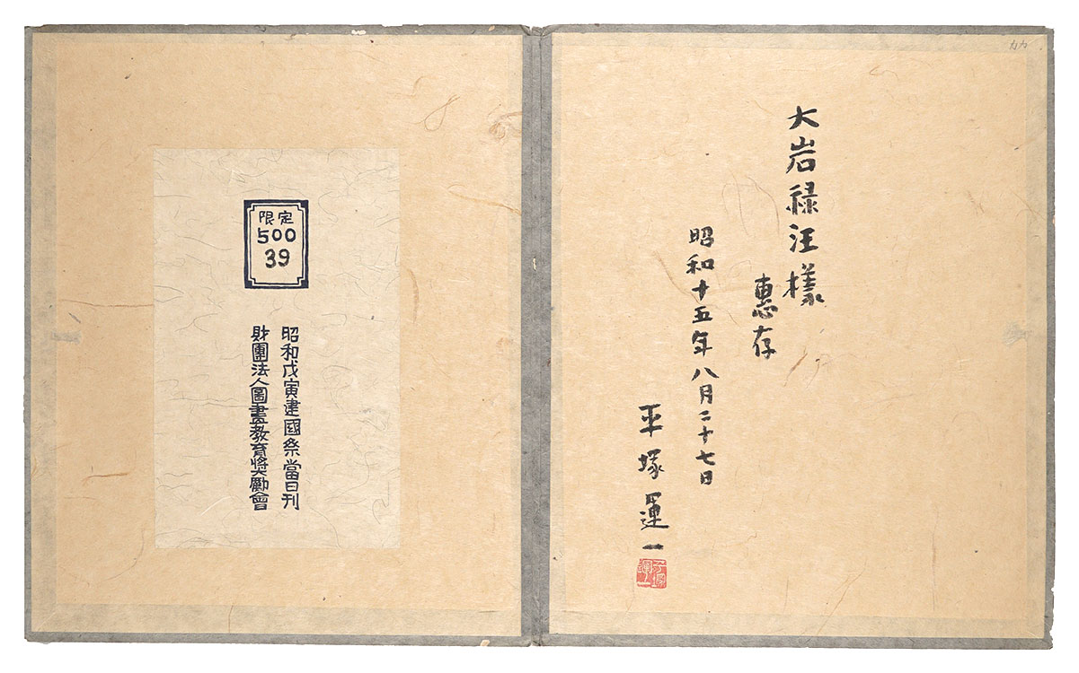 限500 毛筆献呈署名入 34.3×28.3cm(台紙サイズ) 帙(少傷ミ有)