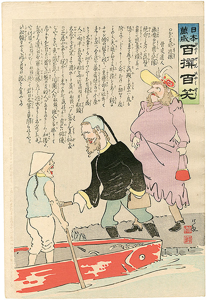 清親「日本万歳 百撰百笑 おか支那逃振 骨皮道人」 | 山田書店美術部オンラインストア