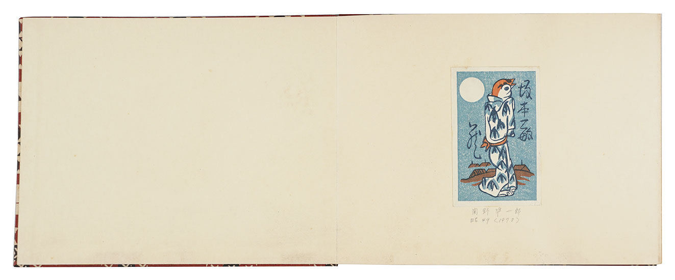 坂本一敏(日本書票協会会長)の全書票を貼付した唯一冊の書票集。表紙装幀は