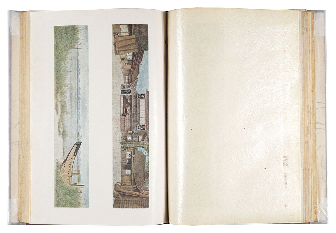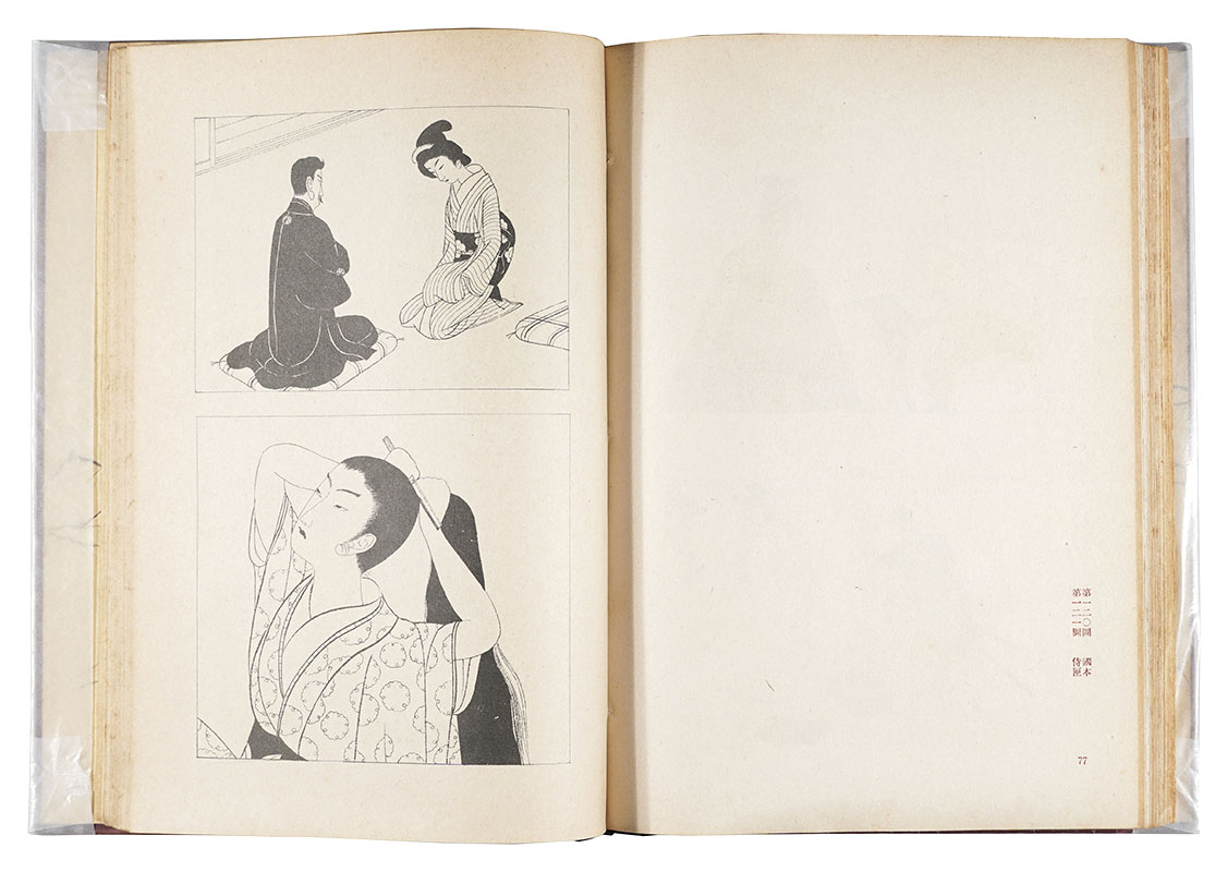 ハードカバー(表紙・見返し木版装) 箱欠 見返しシミ・折レ 背布装少ヤケ・少切レ奥付に蔵印 30.5×22cm