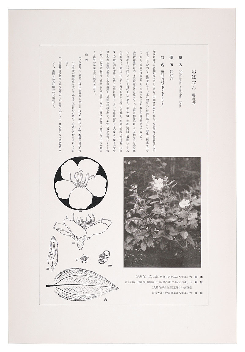 「鼠色一色の木版摺の投影写生図」「該当植物の写真図版付きの詳細な解説」