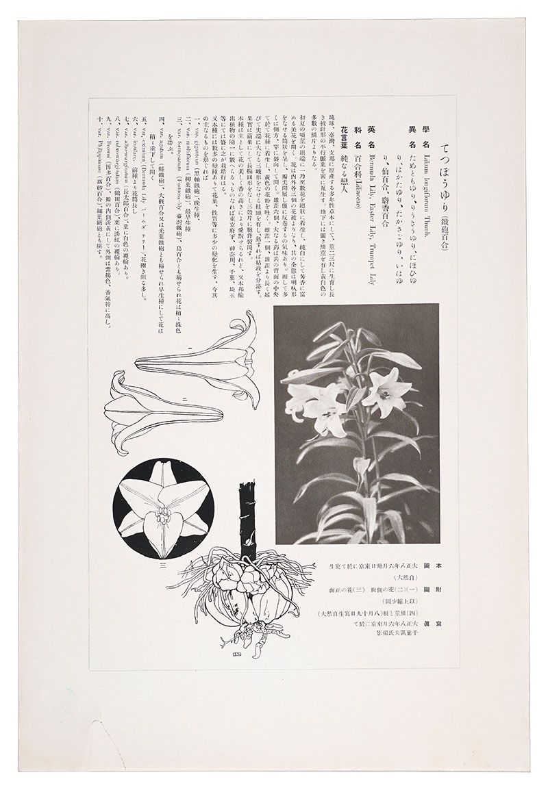 「鼠色一色の木版摺の投影写生図」「該当植物の写真図版付きの詳細な解説」