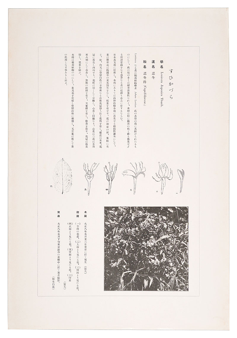 「鼠色一色の木版摺の投影写生図」「該当植物の写真図版付きの詳細な解説」