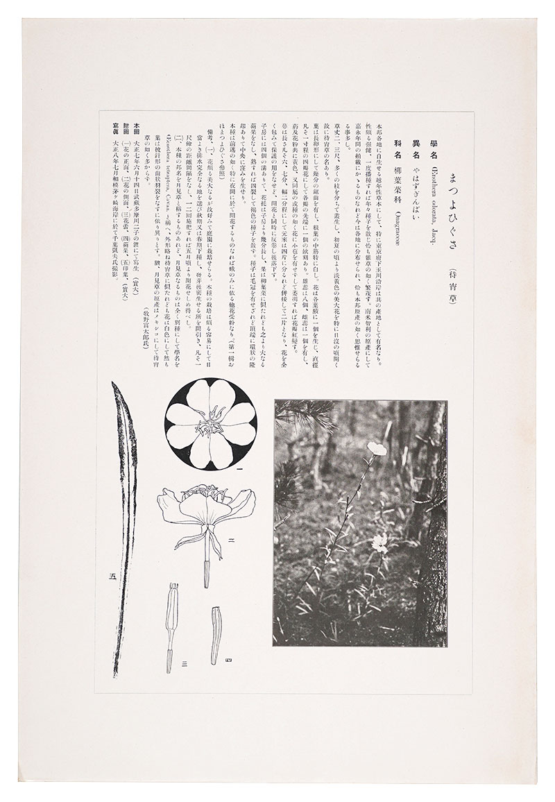 「鼠色一色の木版摺の投影写生図」「該当植物の写真図版付きの詳細な解説」