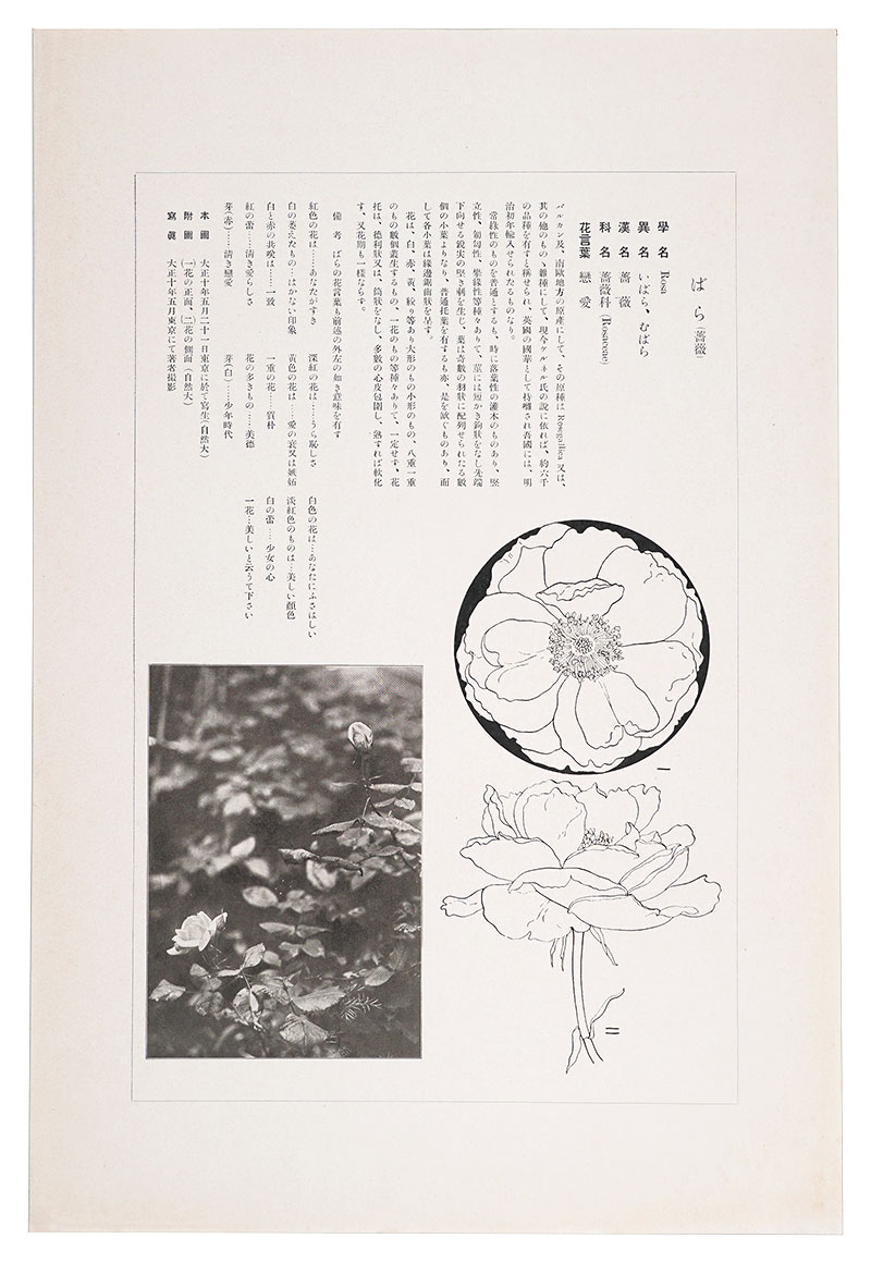 「鼠色一色の木版摺の投影写生図」「該当植物の写真図版付きの詳細な解説」