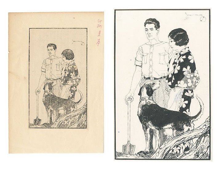 掲載書籍より当該挿画の切り抜き付(台紙貼付 少シミ、少ヤケ有)