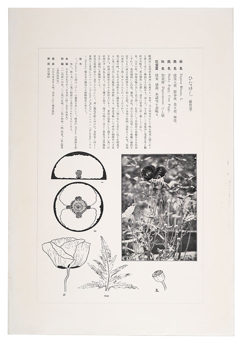 「鼠色一色の木版摺の投影写生図」「該当植物の写真図版付きの詳細な解説」