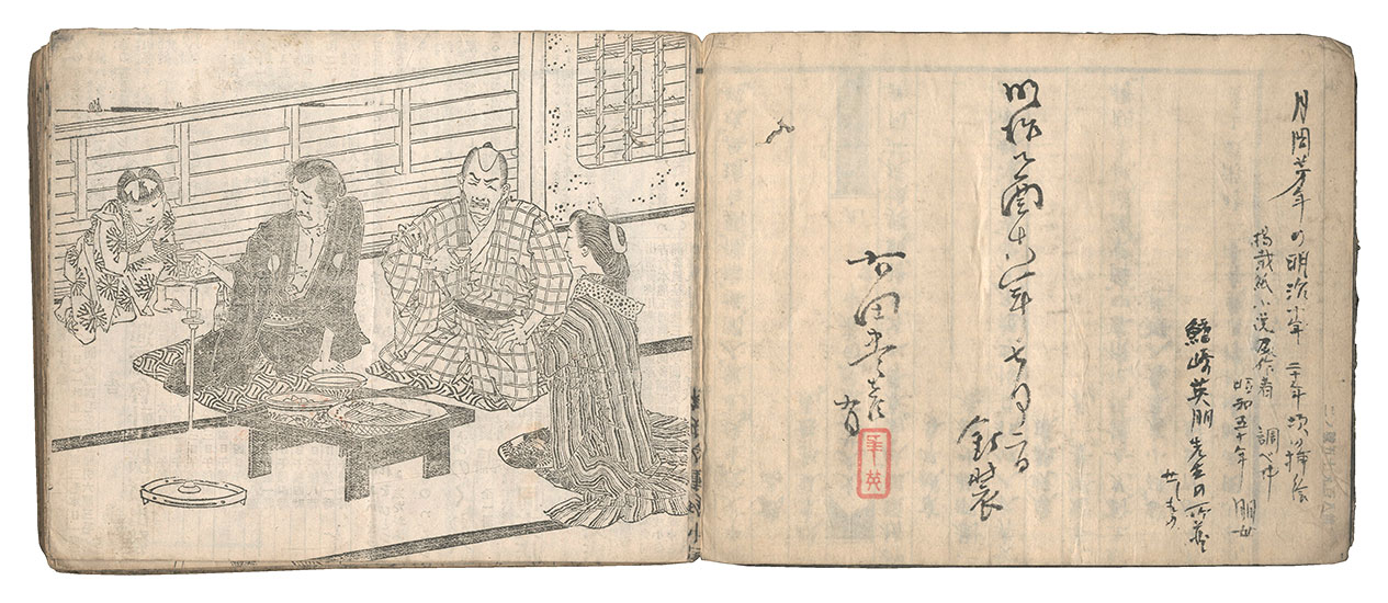芳年の新聞小説の挿絵を切り抜き、折帖にまとめたもの。