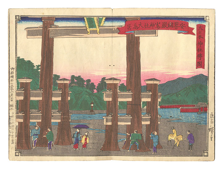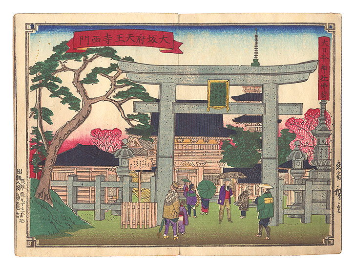 伊勢国内宮本社/西京音羽山清水寺/西京祇園社大鳥居/大坂府天王寺西門/大坂府天満天神社/摂州湊川楠公の神社/大和国初瀬寺又ハ長善寺/紀州高野山金堂/安芸国厳島神社大鳥居/讃岐国象頭山の遠望/東京九段坂靖国神社/東京浅草金龍山/野州日光山神社/信濃国善光寺/常陸国鹿島一ノ鳥居大舟津/下総国成田山新勝寺/相州江の島弁天/相州小田原道了大薩埵/遠州秋葉山坂道/尾州熱田太神宮