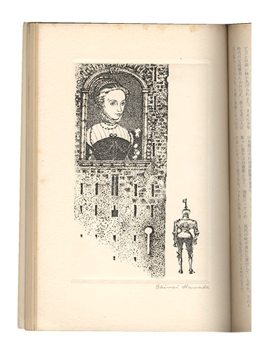 限定版 限500 浜田知明オリジナル銅版画「騎士と鍵」入(サイン入 マージン少シミ 14.8×9.1cm)