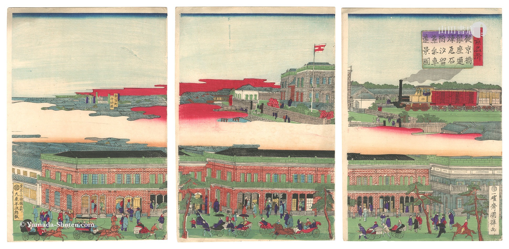 国輝二代「従京橋銀座通煉瓦石附汐留蒸気車遠景図」 | 山田書店美術部オンラインストア